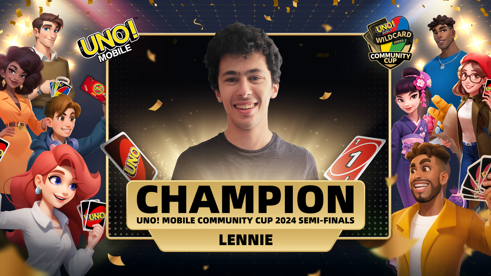 After a wildly competitive UNO!™ Mobile Wildcard Series: Community Cup 2024 H2 Semi-Finals in November, we are delighted to reveal our newest champion - congratulations Lennie from New Jersey, USA!